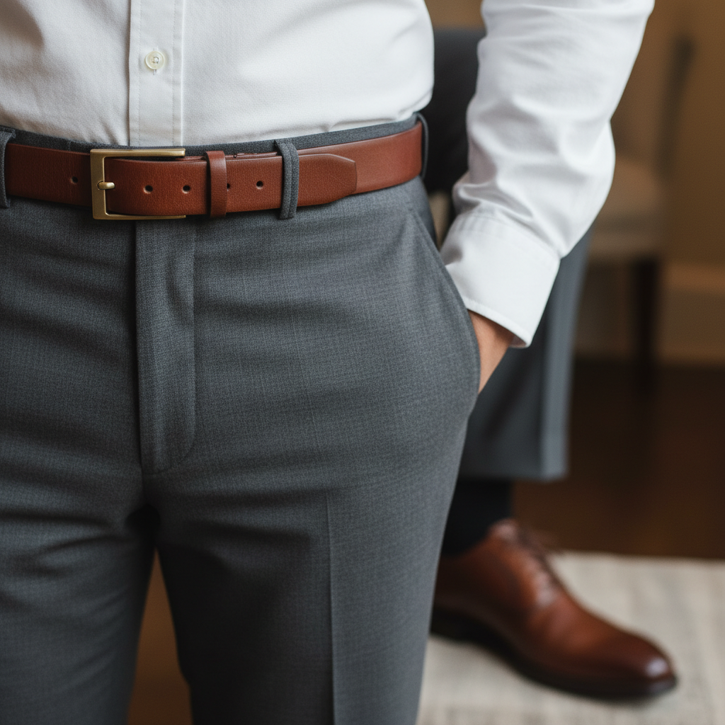 Brown is less formal than black but equally stylish. The key is to match not just the color, but also the shade. A dark brown belt works best with deep brown or oxblood shoes, while lighter tan belts complement beige or lighter brown footwear. Matching tones creates harmony and sophistication.